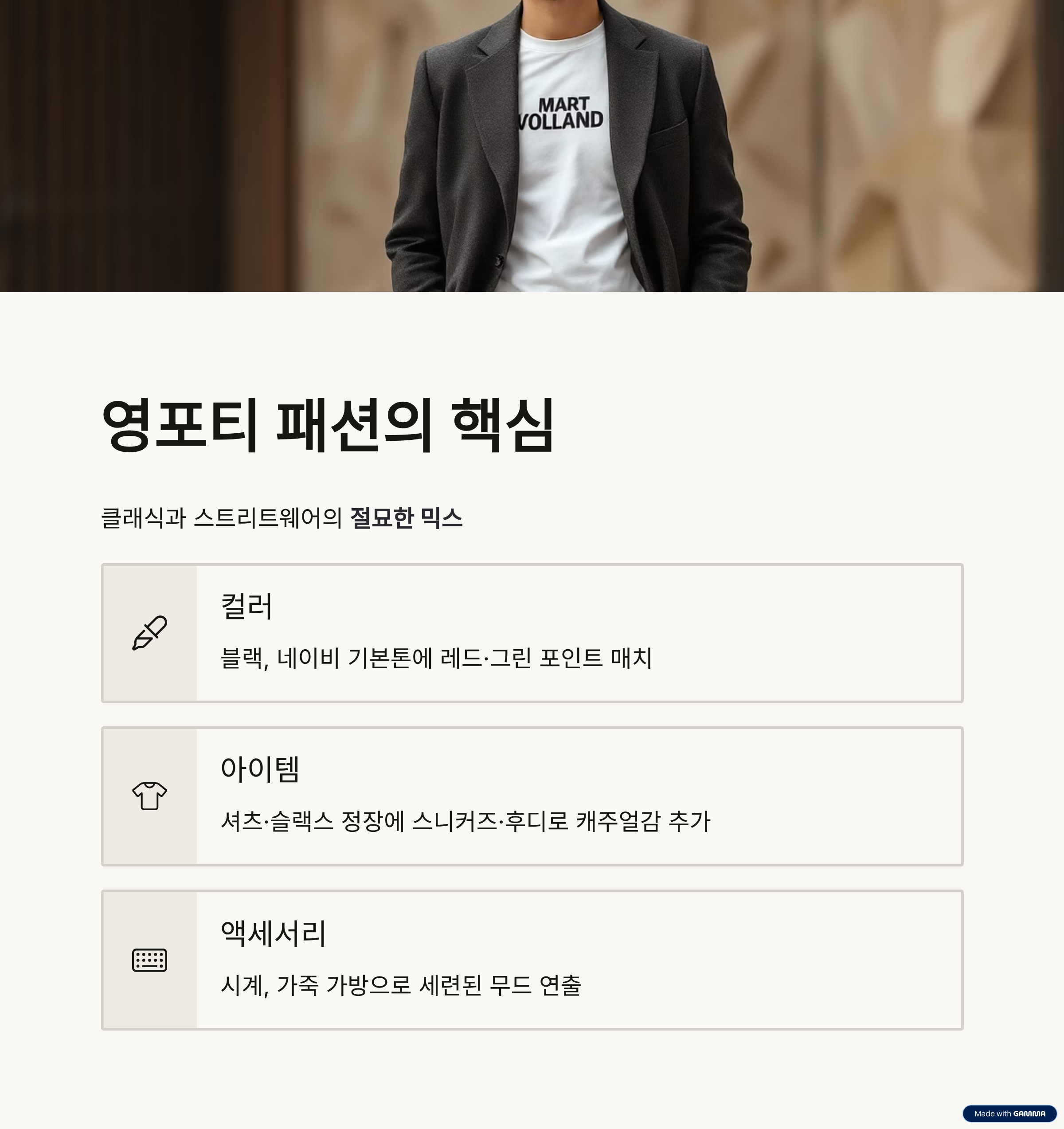 즉, 나이에 얽매이지 않고 “동안감성 + 품격”을 동시에 추구하는 것이 영포티 패션의 핵심입니다.