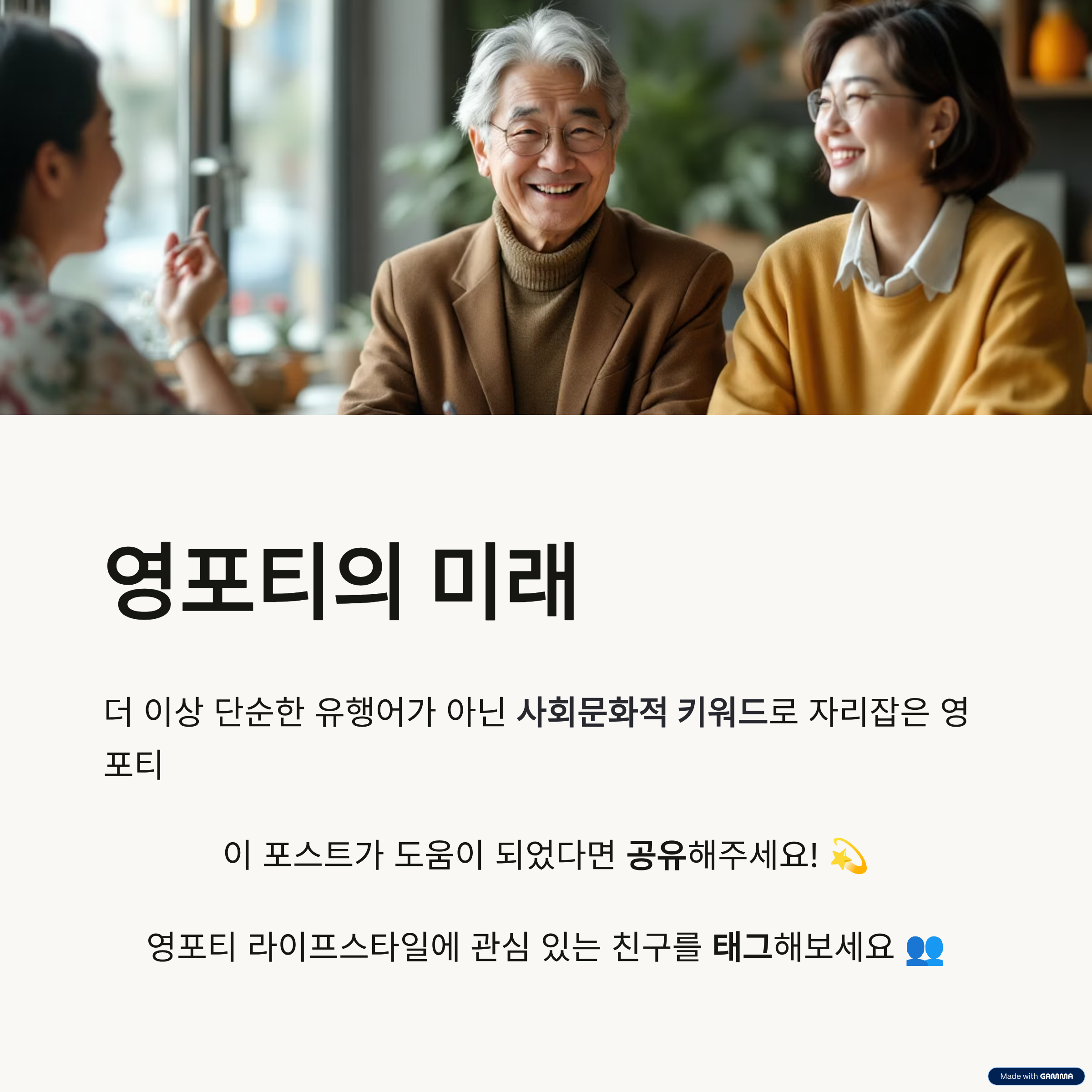 영포티는 더 이상 단순한 유행어가 아니라, 세대(Entity: Generation), 패션(Entity: Fashion), 라이프스타일(Entity: Lifestyle)을 아우르는 사회문화적 키워드로 자리 잡고 있습니다.